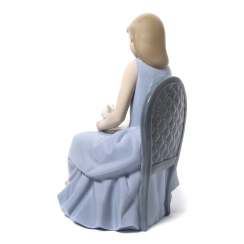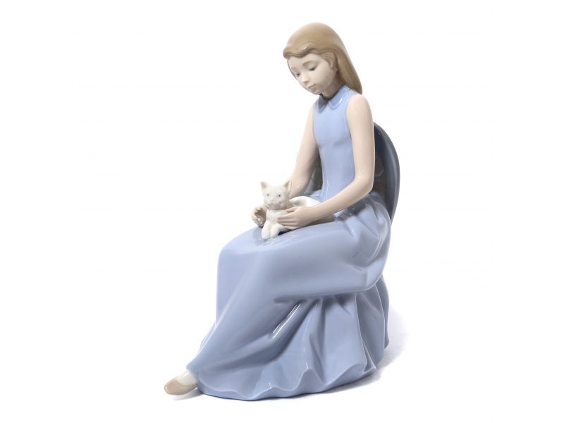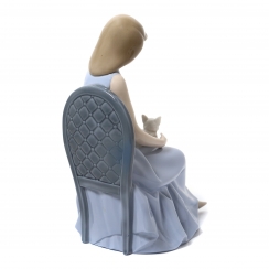 359960 - Девушка, сидящая с кошкой на стуле, высота 28 см, длина 20,5 см, ширина 16 см, Испания, Lladro