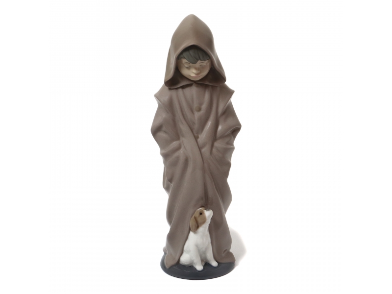 Фарфоровая фигура (статуэтка) "Мальчик в капюшоне с собакой". Ручная подглазурная роспись.