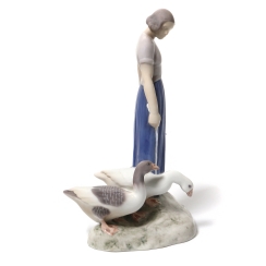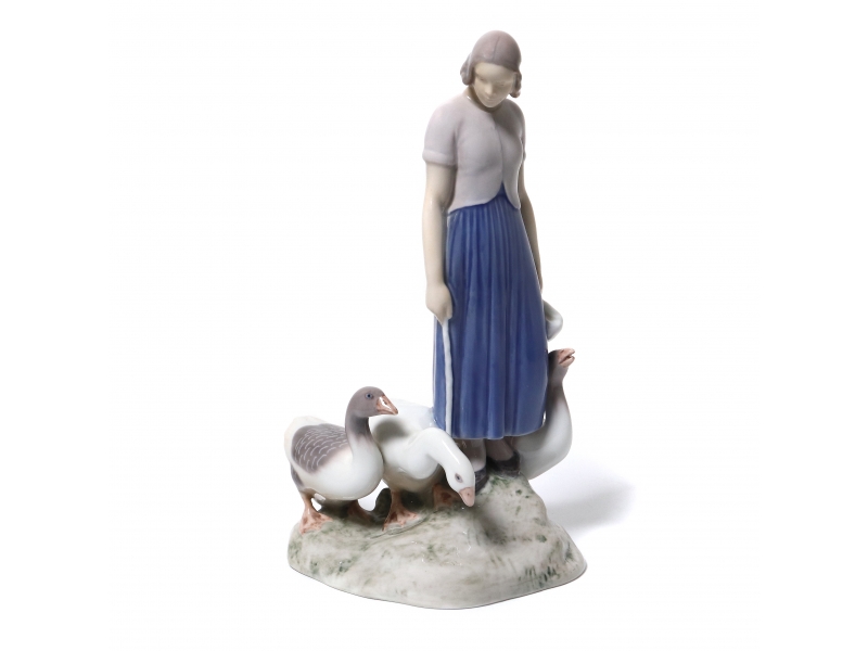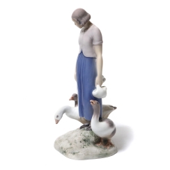 Фарфоровая фигура (статуэтка) "Девушка с гусями". Ручная подглазурная роспись.