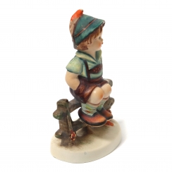 361015 - Мальчик на плетне, высота 10 см, основание 6,7 х 4,5 см, HUM_111