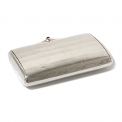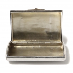 На корпусе имеются небольшие вмятинки. За дополнительную плату могу убрать вмятины и отполировать. ============================== Silver trinket box - business card box with gold trim.