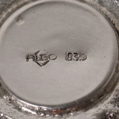 Height: 2.8 cm, base diameter: 5.2 cm, top diameter: 3.8 cm, candle hole diameter: 1.3 cm. Weight: 22 grams of silver 835 fineness.