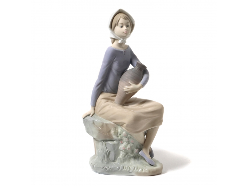 Без сколов, повреждений и без реставраций. ================================= Porcelain figurine "Girl with Jar" (Girl with a jug and a dog). Hand-painted underglaze.