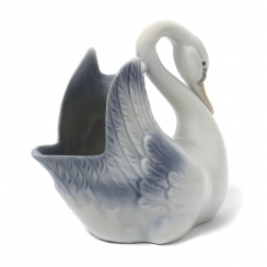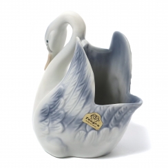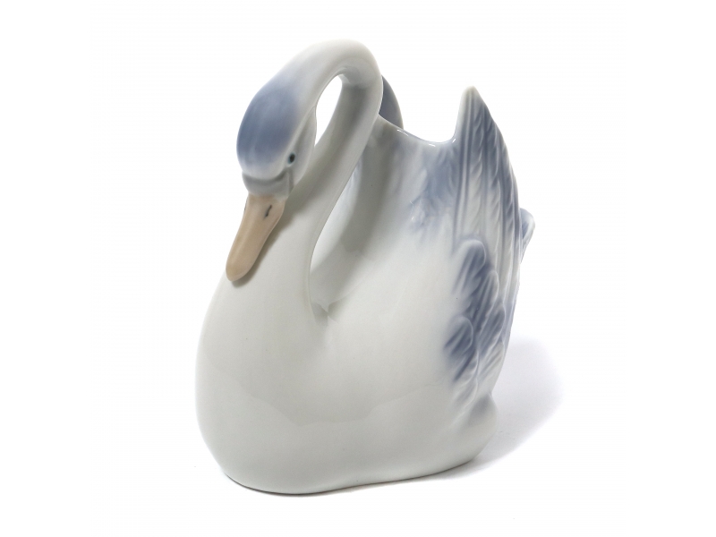 Фарфоровая ваза в виде лебедя. Ручная подглазурная роспись.