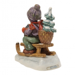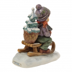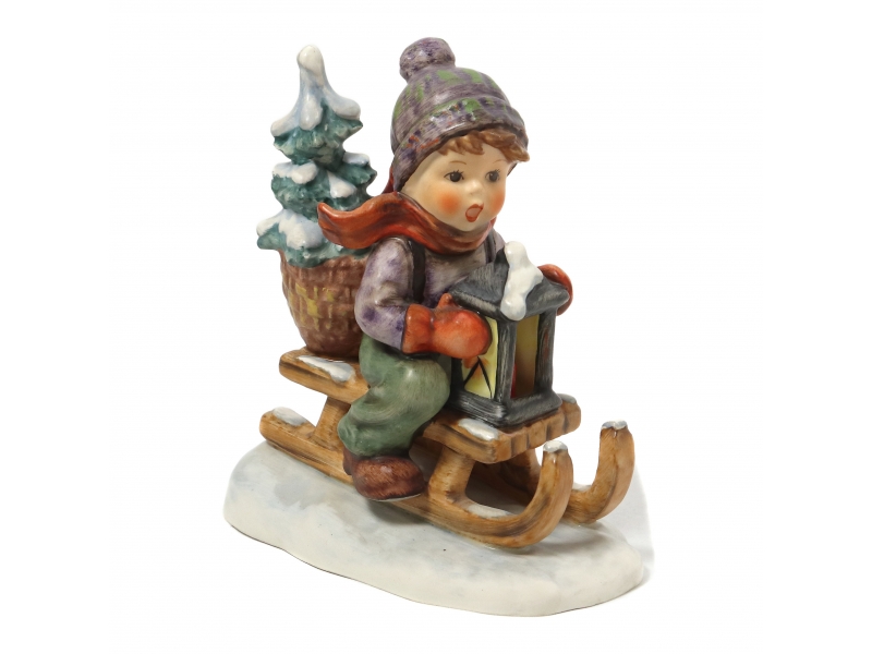 Фарфоровая фигура (статуэтка) "Поездка в Рождество" (Мальчик с елкой и фонарем на санках). Ручная роспись.