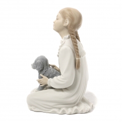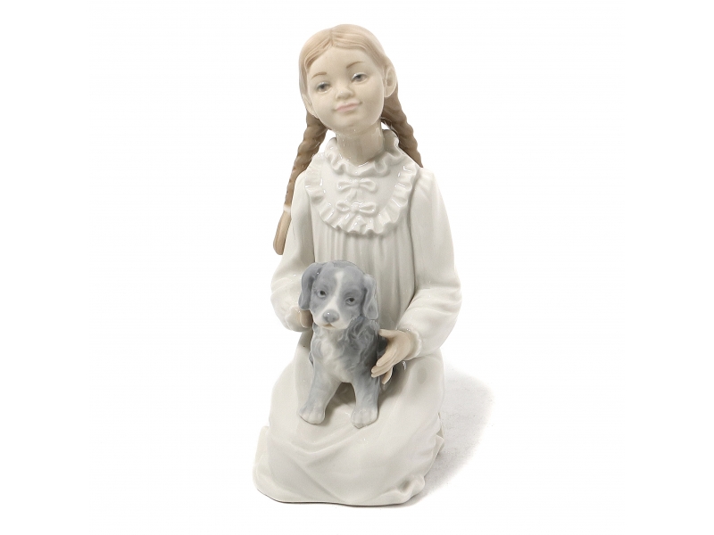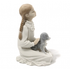 Фарфоровая фигура (статуэтка) "Девочка со щенком". Ручная подглазурная роспись.
