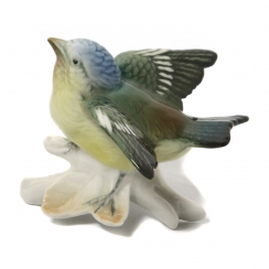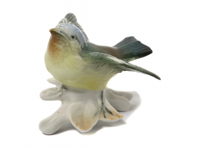 Фарфоровая фигура (статуэтка) "Синица-лазоревка". Ручная подглазурная роспись.