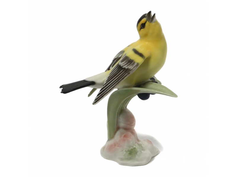 Без сколов, повреждений и без реставраций. ============================== Porcelain figurine "Golden goldfinch". Hand-painted underglaze.