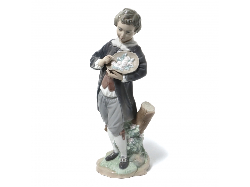 Фарфоровая фигура (статуэтка) "Донсель с розами" (Юноша с цветами в шляпе). Ручная подглазурная роспись.