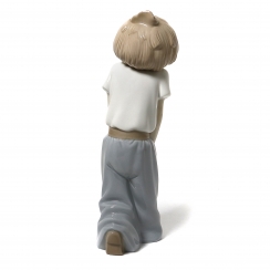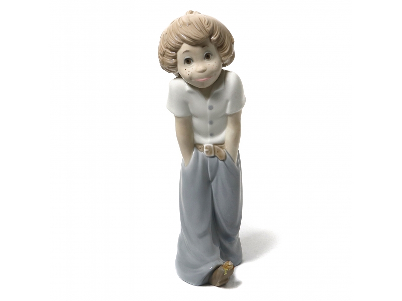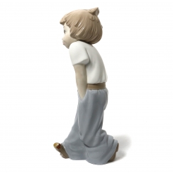 Фарфоровая фигура (статуэтка) "Уличная игра" (Мальчик, пинающий консервную банку). Ручная подглазурная роспись.