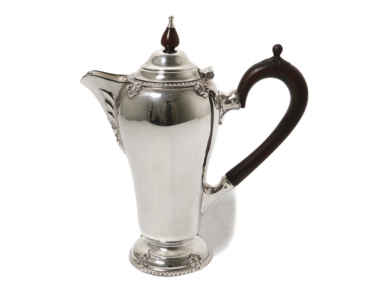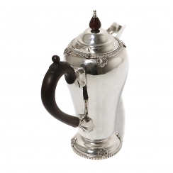 Небольшой серебряный кофейник или кувшин для горячих напитков, какао, шоколада или молока.