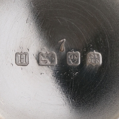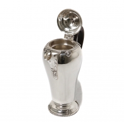 Height at the grip on the lid: 18.3 cm, base diameter: 6.3 cm. Volume: 300 ml. Weight: 266 grams, sterling silver of 925 fineness.