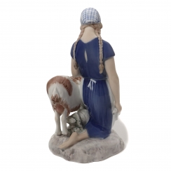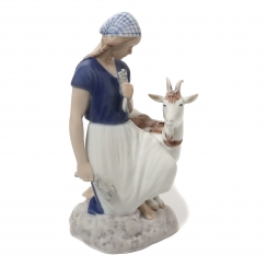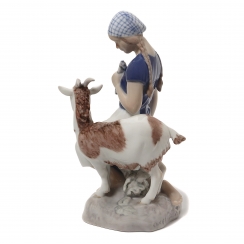Фарфоровая фигура (статуэтка) "Девушка с козой". Ручная подглазурная роспись.