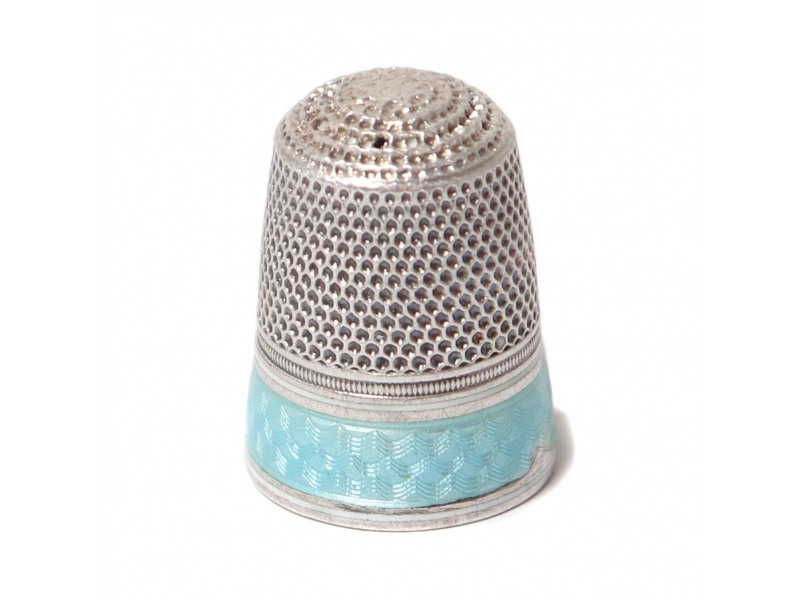 Серебряный наперсток с эмалью по гильошу.