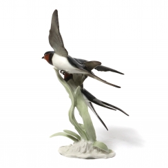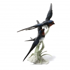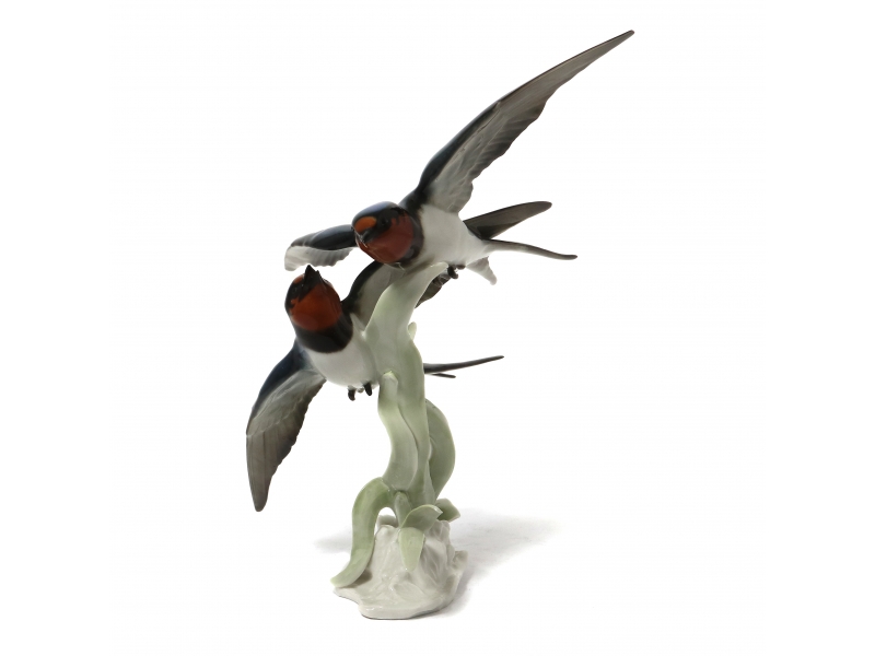 Фарфоровая фигура (статуэтка) "Две летящие ласточки". Ручная подглазурная роспись.