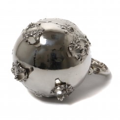 Высота по хватку на крышке: 24,3 см. Общий вес: 780 граммов серебра 800 пробы. =========================== Silver coffee pot, decorated with a miniature plot and plant pattern.
