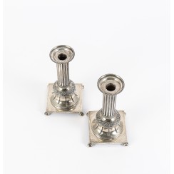 363471 - Цельносеребряные подсвечники, 2 шт, 527 гр, 830 пр, высота 19 см, длина / ширина (включая ножки) 10,5 х 10,5 см, диаметр отверстия под свечу 2 см |