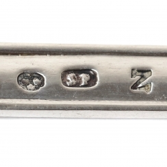 Length: 18.8 cm, scoop diameter: 6 cm. Weight: 38 grams of silver 830 fineness.