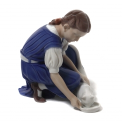 Фигура производилась также после объединения фабрик Royal Copenhagen и Bing & Grondahl (1985-1989) под брендом Royal Copenhagen, номер модели: 421. ============================= Porcelain figurine "Girl feeding cat". Hand-painted underglaze. "Only one drop" by Pope's catalog. Denmark, Copenhagen, Bing & Grondahl. Sculptor: Ingebord Plockroos Irminger (years of life: 1872-1962). Model: 1745. The initials of the artist painted this figurine: ES . Factory mark: 3 towers B&G Kjobenhavn Denmark, the 1962-1970.