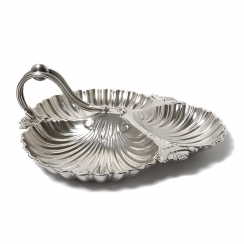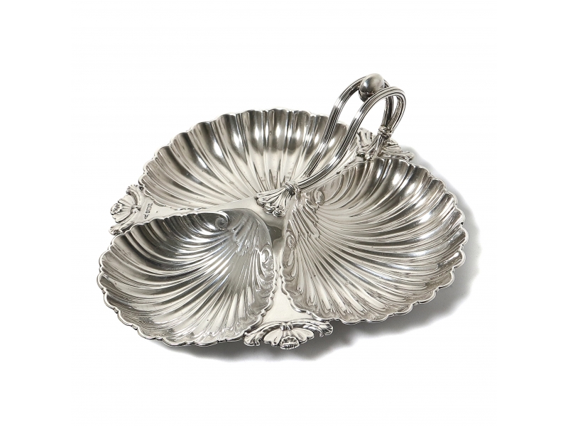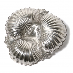 В одном месте на краю вазы пайка. ========================== Silver compartmental dish (bowl for nuts or small snacks).