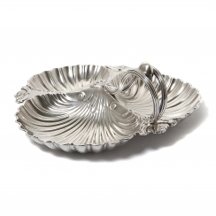 Высота по верх ручки: 10,2 см, высота по край: 3 см, длина: 25 см, ширина: 24,5 см. Вес: 535 граммов серебра 925 пробы.