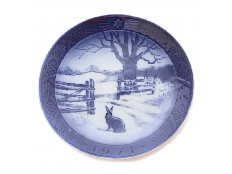 Тарелка первого сорта. Без сколов, повреждений и без реставраций. ================================ Collectible porcelain plate year 1971 "Hare in Winter" (Hare i vinterlandskab) from a series of annual Christmas plates.