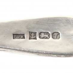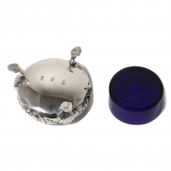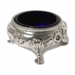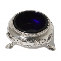 Солонка с кобальтовой вставкой и ложкой, Англия, вес без стекла 49 гр, 925 пр