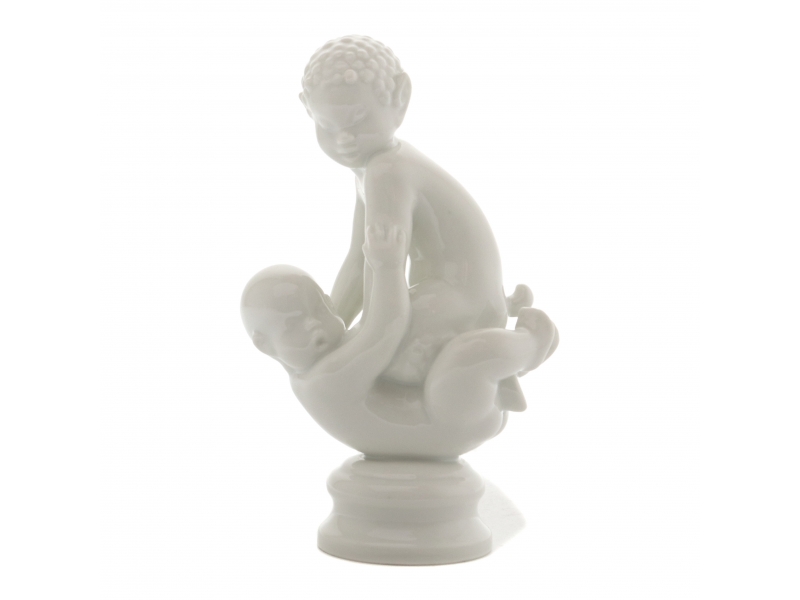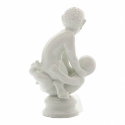 Фарфоровая фигура (статуэтка) "Фавн с малышом". Нерасписанный белый глазурованный фарфор.
