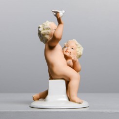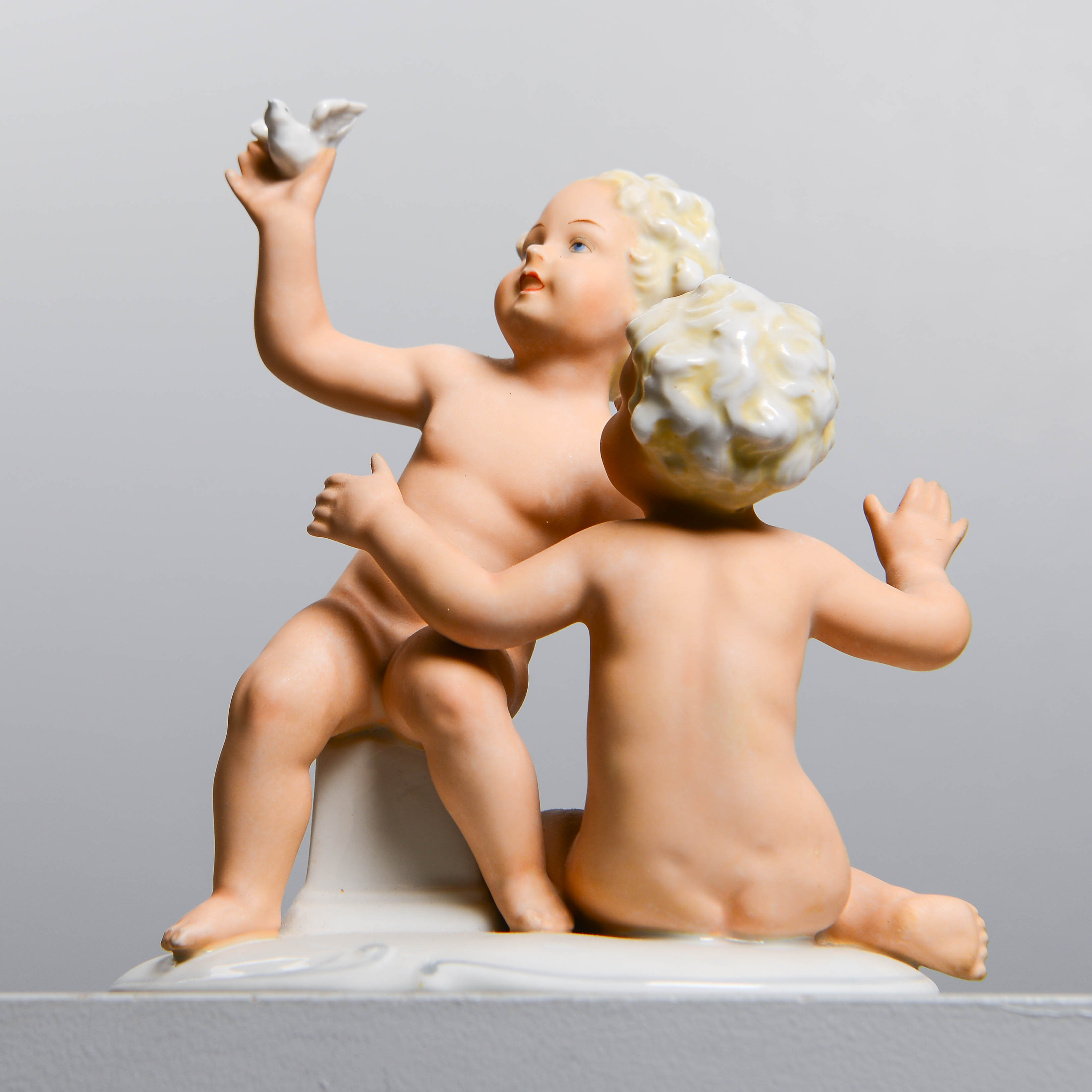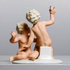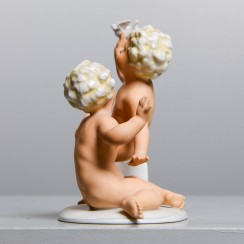 Фарфоровая фигура (статуэтка) "Два обнаженных мальчика (путти) с птицей". Ручная роспись.