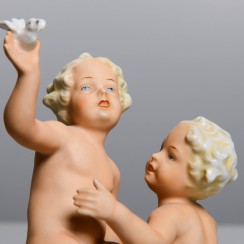 Эта же фигура выпускалась фабрикой Wallendorf с номером модели 1173. ======================================= Porcelain figurine "Two naked boys (putti) with a bird". Hand-painted.