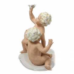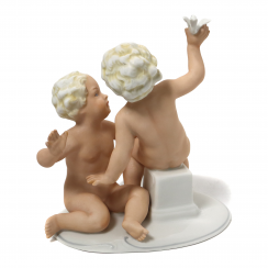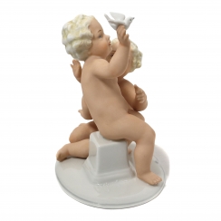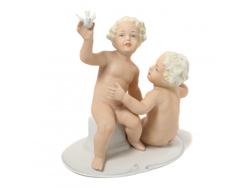 Фарфоровая фигура (статуэтка) "Два обнаженных мальчика (путти) с птицей". Ручная роспись.