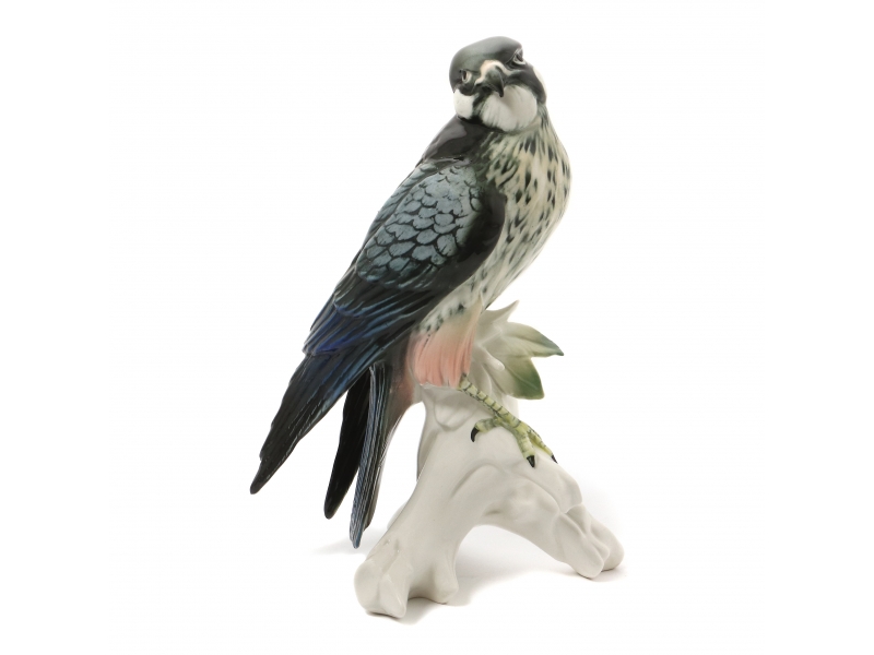 Фарфоровая фигура (статуэтка) "Сапсан на ветке". Ручная подглазурная роспись.