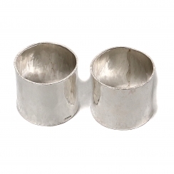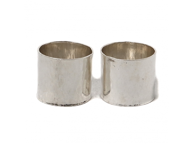 Диаметр: 3,8 см, высота: 3,5 см. Общий вес: 78 граммов серебра 925 пробы. ============================= Silver napkin rings, 2 pcs. Forging.
