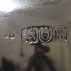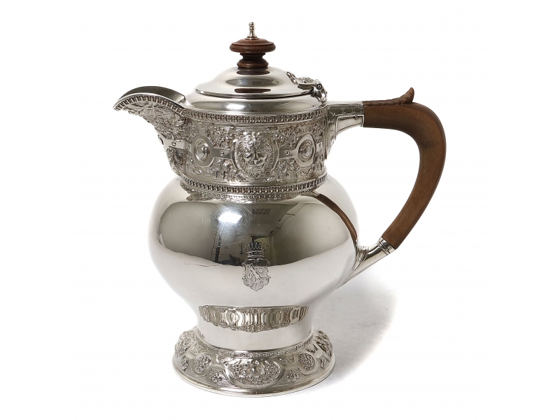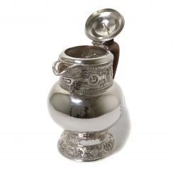 Height of grip on lid: 19.5 cm, base diameter: 9.5 cm. Volume: 700 ml. Weight: 662 grams, sterling silver of 925 fineness.