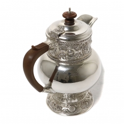 Серебряный кувшин с деревянной ручкой.