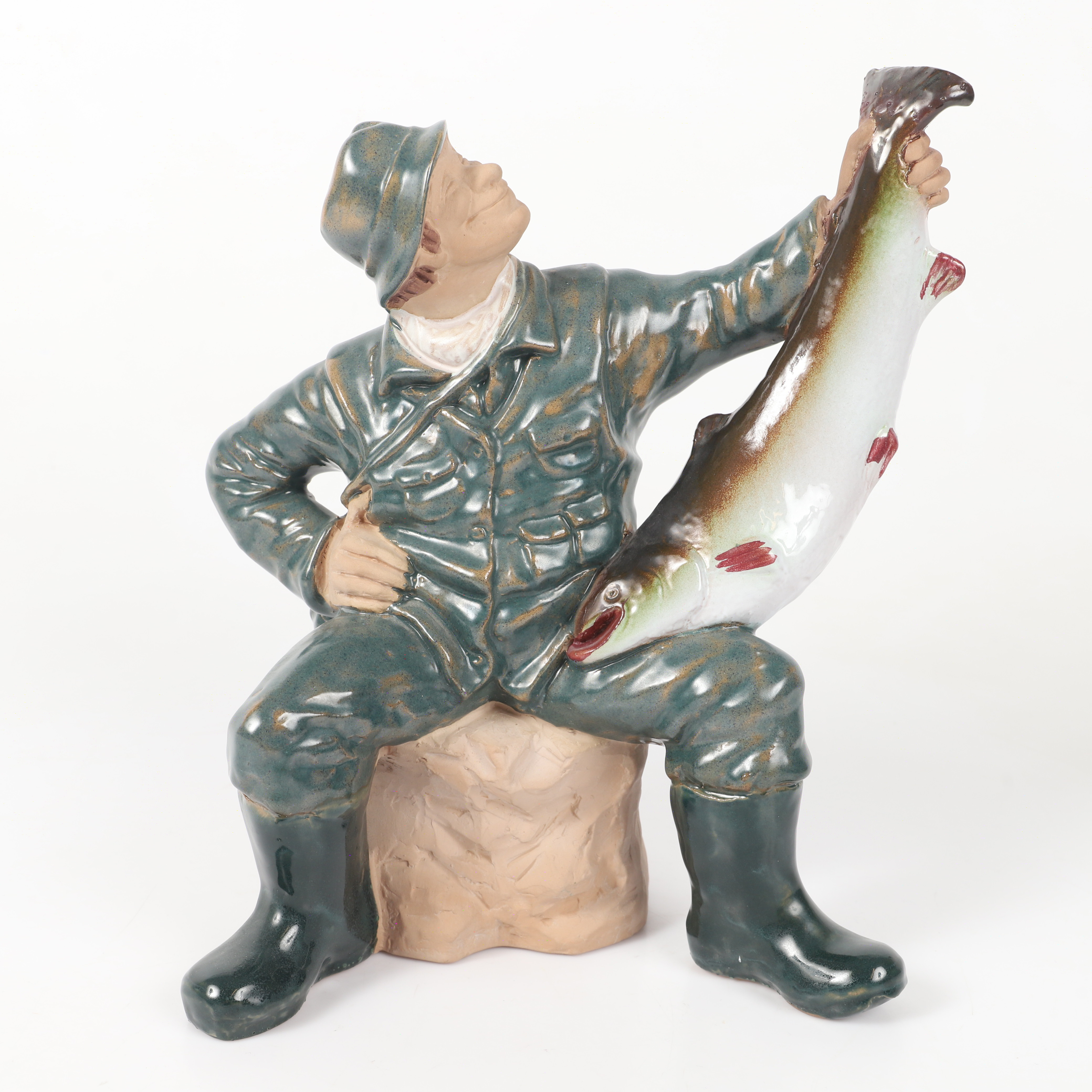 Рыбак с большой рыбой, высота 27 см, длина 21 см, ширина 16 см, Швеция, JIE Keramik, конец 20 века.