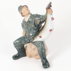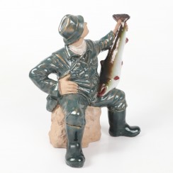 367519 - Рыбак с большой рыбой, высота 27 см, длина 21 см, ширина 16 см, Швеция, JIE Keramik, конец 20 века.