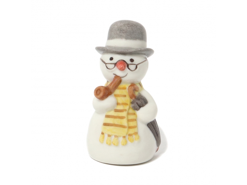 Фарфоровая фигура (статуэтка) "Снеговик - дедушка с трубкой". Ручная подглазурная роспись.