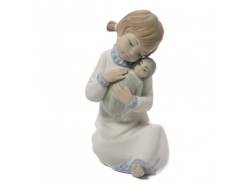 Фарфоровая фигура (статуэтка) "Девочка с куклой". Ручная подглазурная роспись.