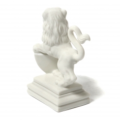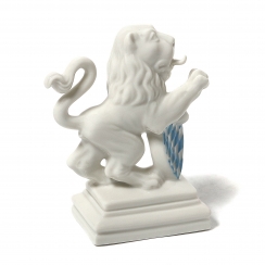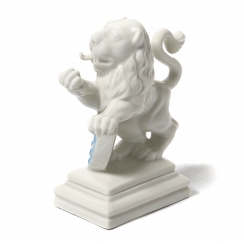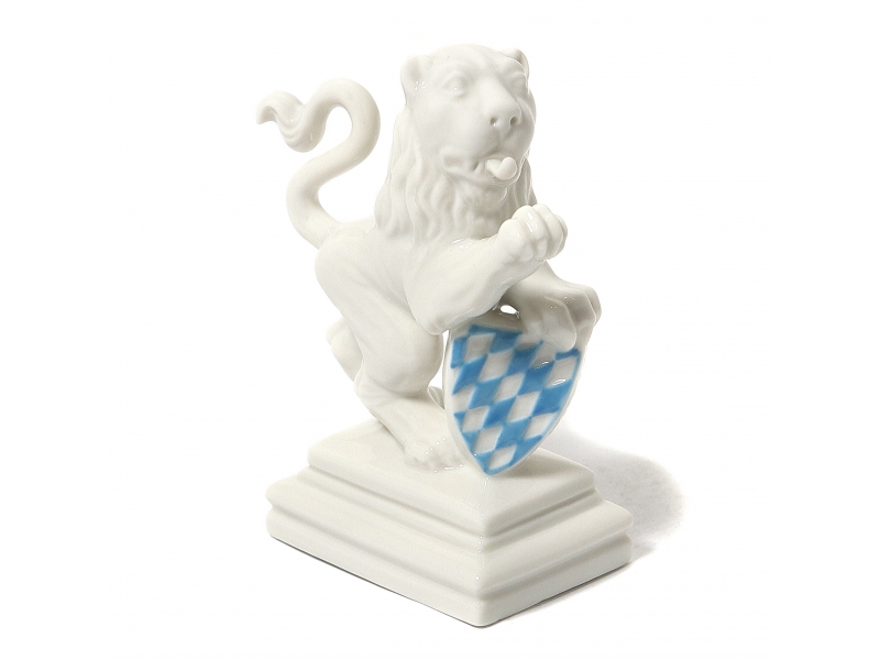 Фарфоровая фигура (статуэтка) "Нимфенбургский лев с геральдическим сине-белым щитом". Ручная подглазурная роспись.