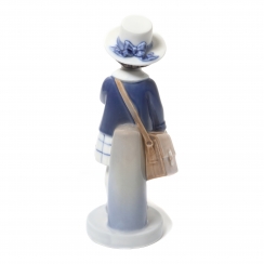 Фарфоровая фигура (статуэтка) из серии Месяцы года "Сентябрь - школьница с портфелем". Ручная подглазурная роспись.