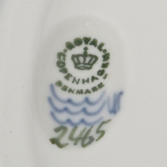 Дания, г. Копенгаген, Royal Copenhagen, 1969-1974 гг. Скульптор: Erik Nielsen (годы жизни: 1857- 1947; годы работы на фабрике: 1887-1926). Номер модели: 2465, производится с 1894 года. Инициалы художника, расписавшего вазу: UT . Клеймо производителя.