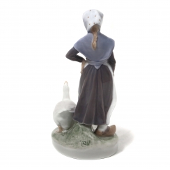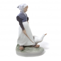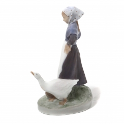 Фарфоровая фигура (статуэтка) "Девушка пасущая гуся". Ручная подглазурная роспись.