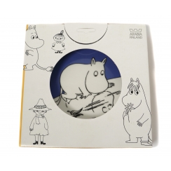 Фарфоровая тарелка с двусторонней иллюстрацией "Муми-тролль на льду" (Muumipeikko jäällä). Финляндия, Arabia. В оригинальной коробке.