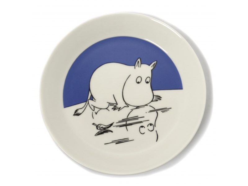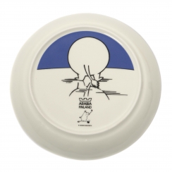 Существует две версии тарелки: с односторонней и двусторонней иллюстрацией. ====================================== Porcelain plate with 2-sided illustration "Moomintroll on ice" (Muumipeikko jäällä). Finland, Arabia. In the original box.
