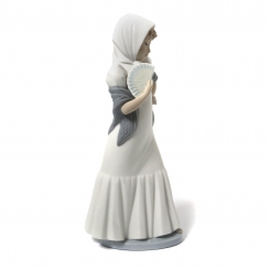 Фарфоровая фигура (статуэтка) "Кокетка (девушка из Мадрида)" (Девочка с веером). Ручная подглазурная роспись.