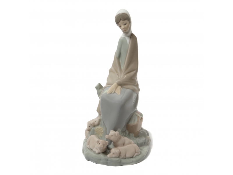 369920 - Девушка с поросятами, высота 25 см, основание 14,5 х 12,3 см, Испания, NAO
