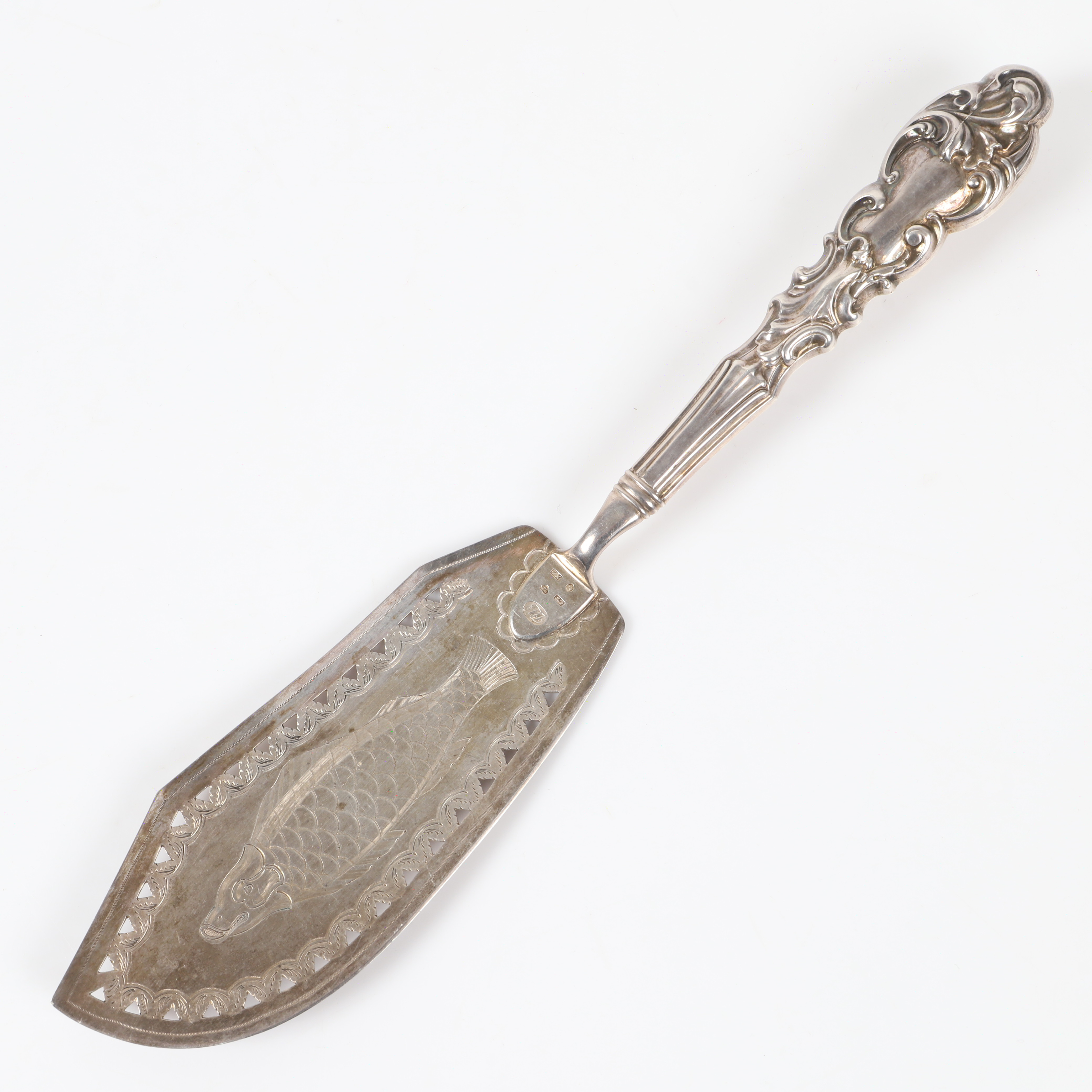 Цельносеребряная сервировочная лопатка, CARL TENGSTEDT, Швеция, 1852 год, 130 гр, 830 пр, 33,7 см