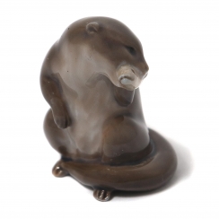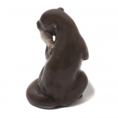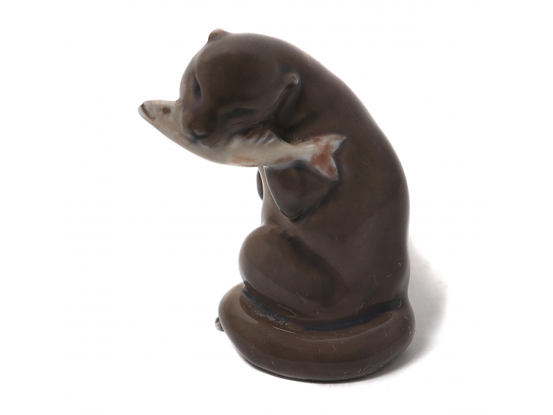 Фарфоровая фигура (статуэтка) "Выдра с рыбой". Ручная подглазурная роспись.