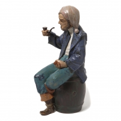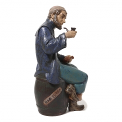 370856 - Керамическая статуэтка Моряк с трубкой, сидящий на бочке, высота 28 см, длина 14 см, ширина 11,5 см, Испания, NAO by Lladro
